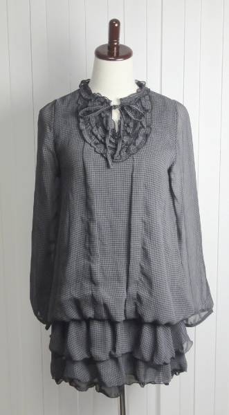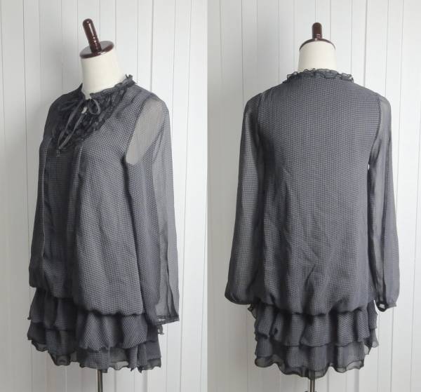 | ポイント | ハッシュアッシュのチュニックです。 黒×グレーの千鳥格子柄です。 ・首元や裾のフリルが素敵です。 |
