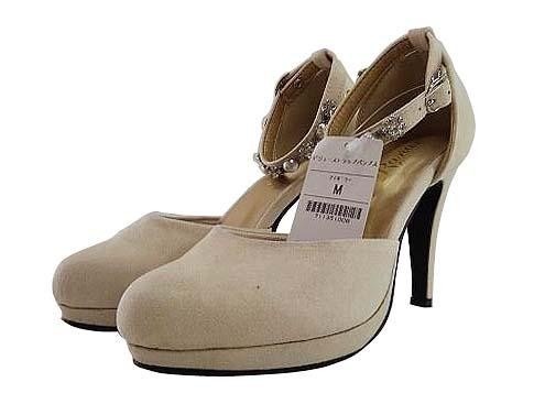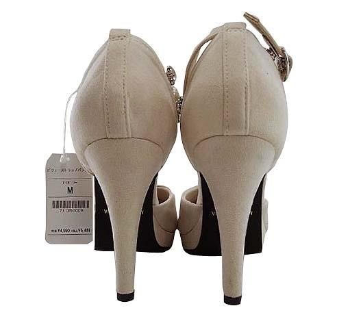 SG0975■新品 訳あり厚底アーモンドトゥパンプス セパレート ハイヒール ピンヒール ビジューストラップ Mサイズ 23.0cm-23.5cm アイボリー