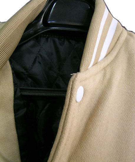 ベージュと白の無地スタジャンです。ノーブランド。中国製。
