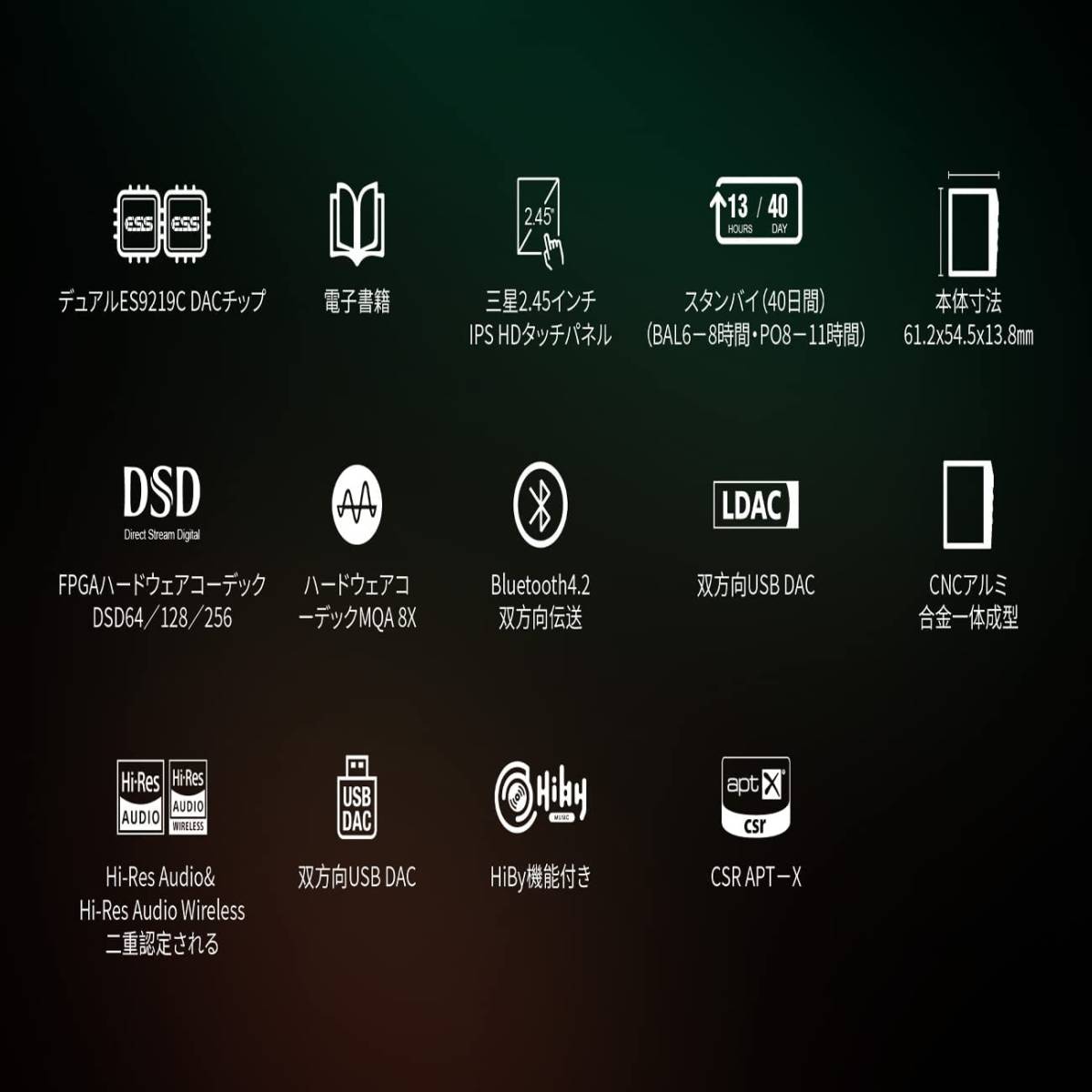 ブラック 高音質対応 ネイティブ音源を再生 アルミニウム合金ボディ OTGサポート ロスレスコーデックに対応 DAP ハイレゾプレーヤー