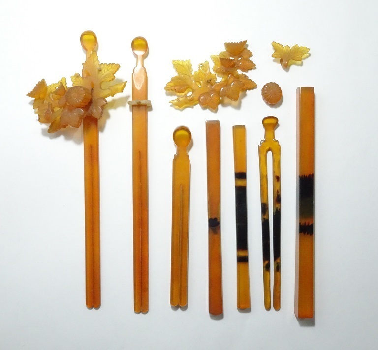 素材:鼈甲。写真2枚目(左):全長22cm×横8.2cm×高さ3.2cm。その他のサイズは測っていません。その他古いもので、経年の擦れ、汚れ、傷等ございます。現状優先とお考え頂き大まかな外観状態は写真をご参照頂けますようどうぞよろしくお願いいたします。