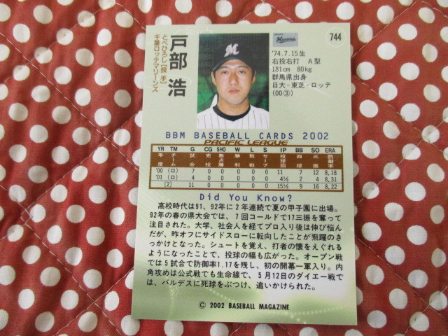 ★BBM 2002 ②★ 744 戸部浩 千葉ロッテマリーンズ ベースボールカード トレカ♪