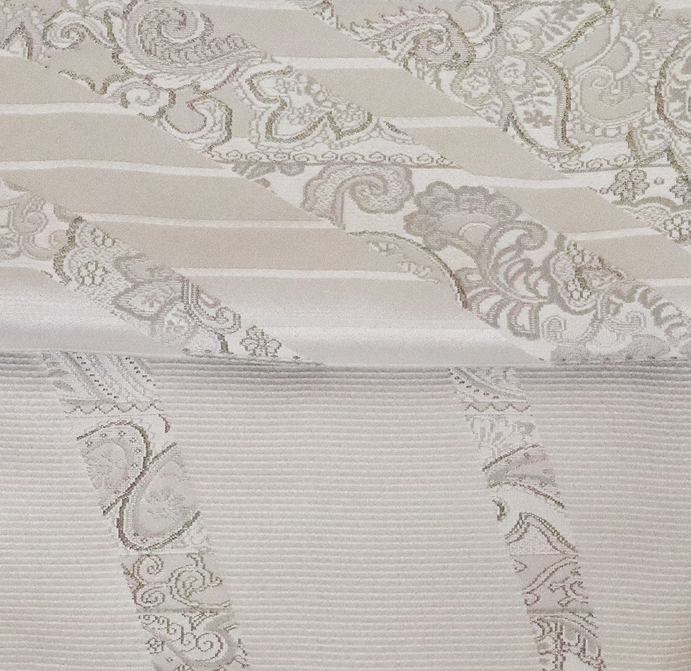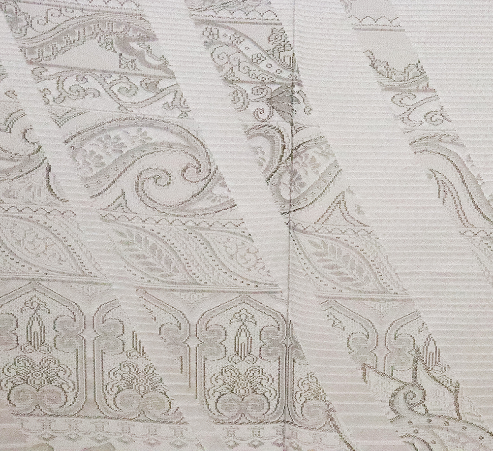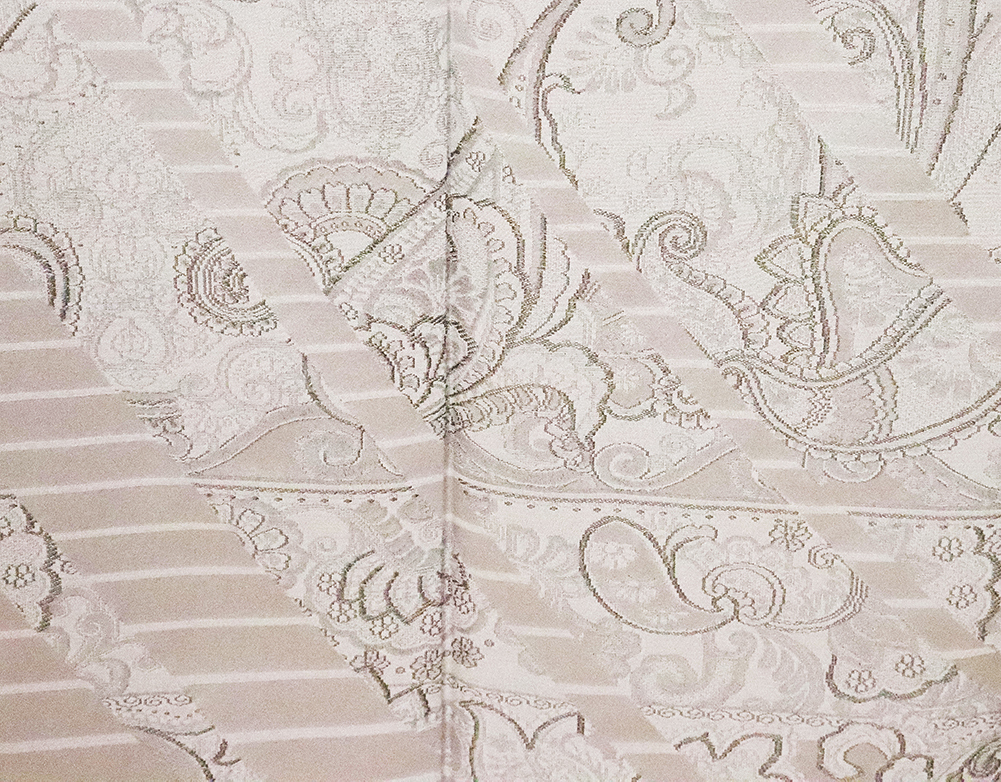 | 色・柄 | 訪問着 袷 丹後縮緬地 段織地 ライトグリーン横段地 寿光織唐花・ペイズリー・熨斗文 (写真では上手く色が出ない場合があります。ご了承下さい) |