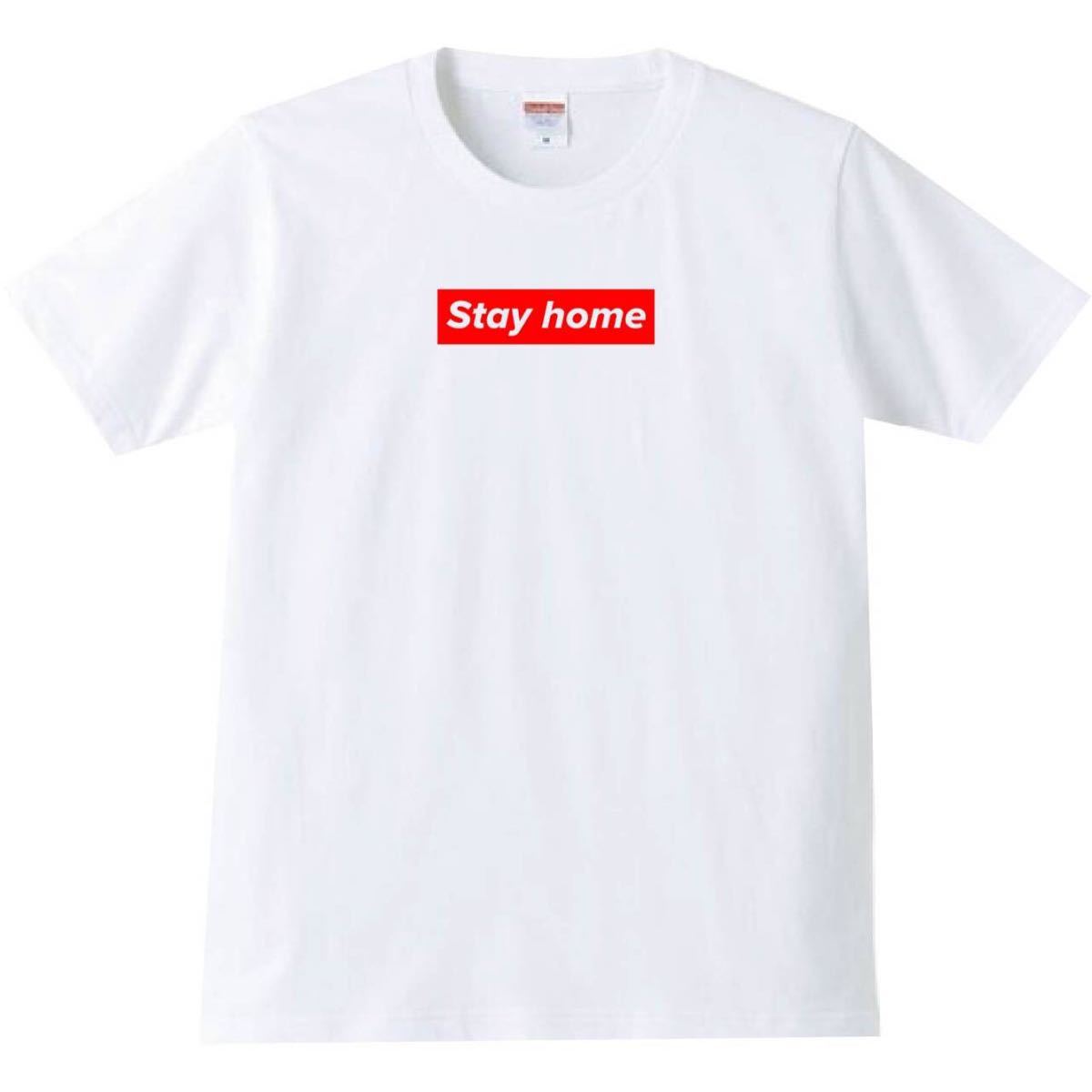 【送料無料】【新品】Stay home ステイホーム Tシャツ パロディ おもしろ プレゼント メンズ 白 Sサイズ