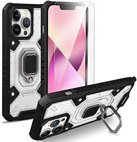 iPhone13/13 Pro 6.1ケース iPhone 13/13 Proカバー 6.1インチ レンズ保護 耐衝撃 全面保護 指紋防止 軽量薄型 スタンド機能 フィルム(1枚入り)高透過率アイフォン13/13Pro スマートフォンケース(ブラック)
