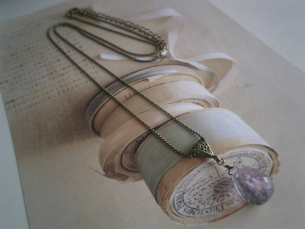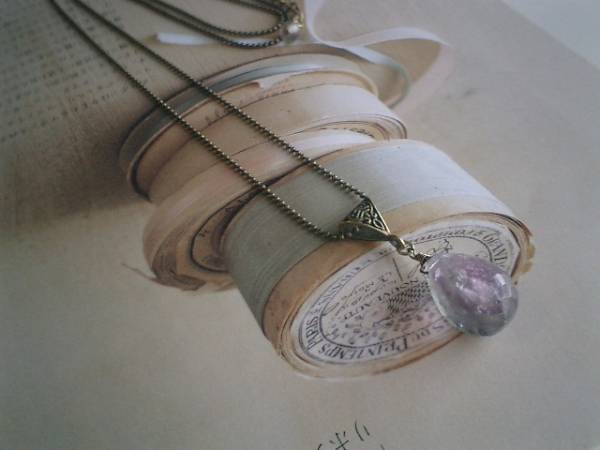 儚げな色を集めて・・シリーズです♪フローライトの可憐なネックレスです♪♪20ミリ×15ミリのドロップカットのフローライトは繊細なボールチェーンを合わせました♪淡いパープルにグリーンやブルーのグラデーションが神秘的な表情です♪長さは75センチ+アジャスター12センチで最長87センチ位です♪お揃いのネックレス3本セットやお揃いのブレスレットやイヤリングも出品しています♪♪シンプルで飽きのこないいつまでも着けられるデザインを考えて作りました!ハンドメイドをご理解頂いてノークレーム、ノーリターンでお願いします