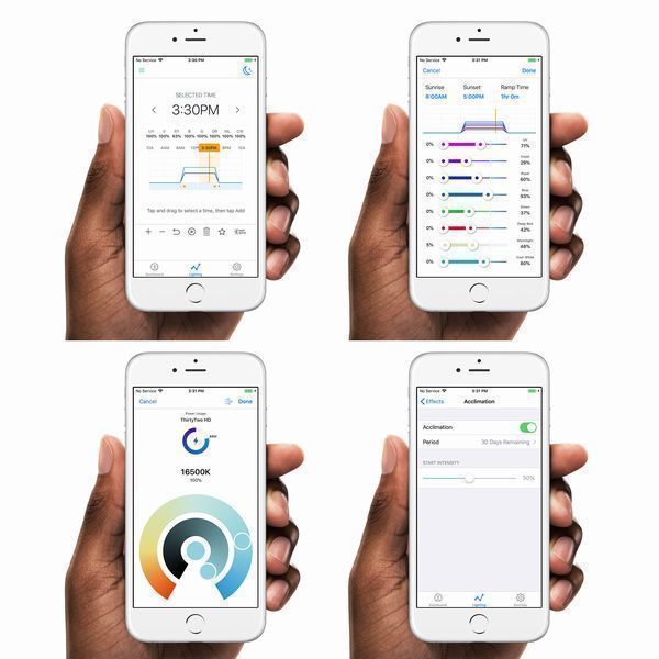 前モデルよりLED素子数が20%増え、青はより鮮やかに、白はより明るく改善されました。色の混ざり具合は世界中のリーフキーパーのニーズに合わせて設計されており、信頼できるLED照明です。ハイドラ32&64HDはより高い照度と演色度であり、スマートフォンなどのアプリで簡単に操作できるようになりました。HD機能により1つの色強度を下げると、余った電力を他のカラーチャンネルに付与することができます。接続方法も従来のwifiから、より接続しやすいBluetoothに変更されました。月の満ち欠けを自動で再現することもでき、サンゴの産卵を助長することも可能です。メーカー:アクアイルミネーション本体サイズ(W×H×D):301 × 137 × 36(mm)対応水槽サイズ:幅-90cmセット商品:Hydra HMS Single Arm Kit 1セット※専用シングルアームとのセット商品となります。
