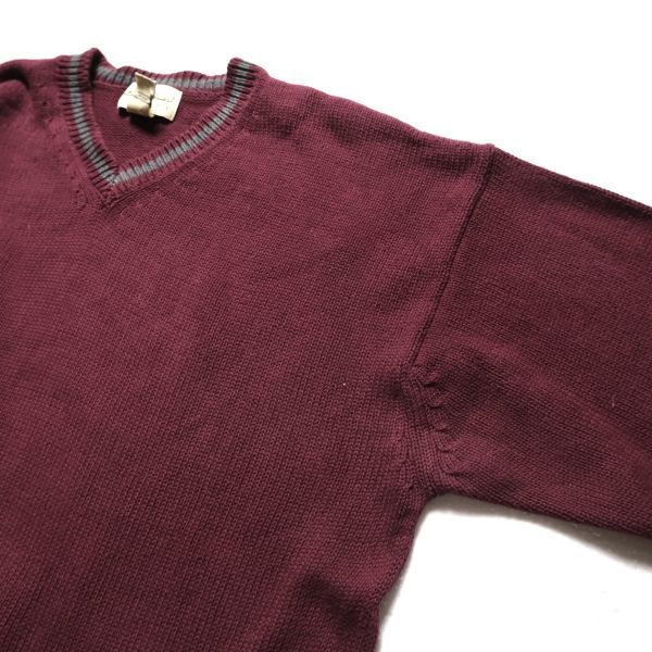 90's オーストラリア製 エディーバウアー Vネック コットン チルデンニット セーター (L) エンジ系 90年代 旧タグ オールド Eddie Bauer