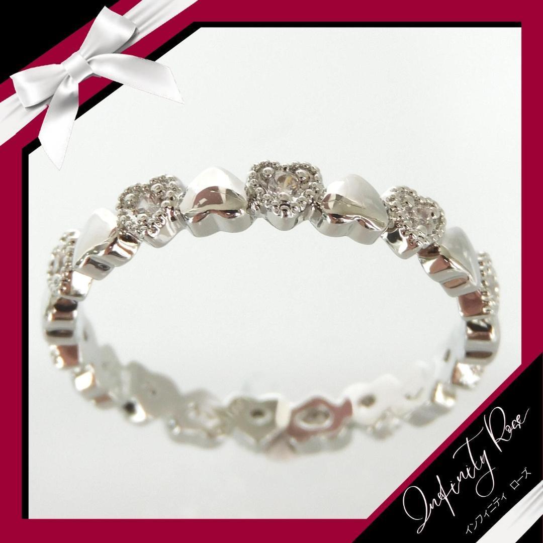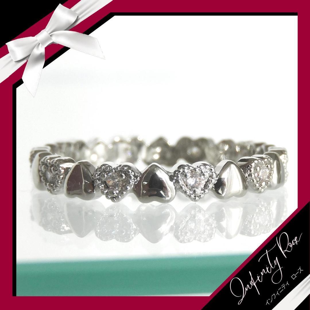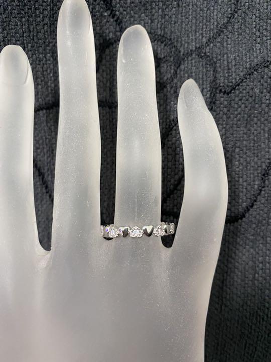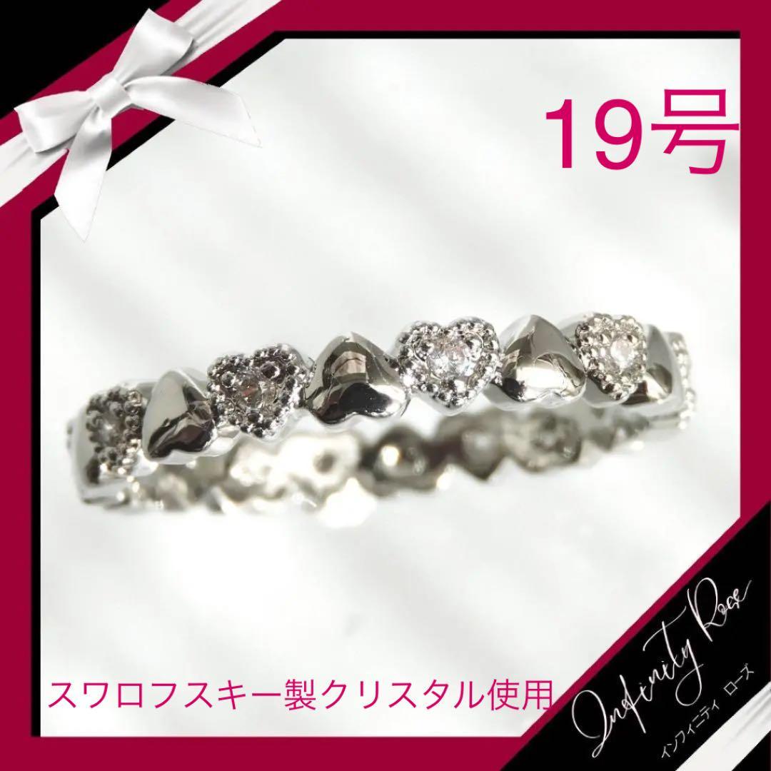 (1099)19号 シルバー 落ち着いたハート小粒リング 大人系 スワロフスキー製クリスタル使用