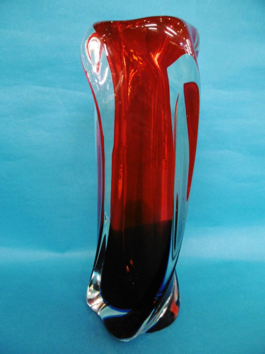 | 当時物★KAMEI/色のきれいなガラス花瓶/花器/硝子昭和レトロ★ | |