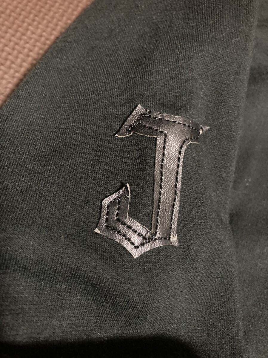 美品semantic designダブルファスナー、ワッペン付き黒、ライングリーン、赤、白、シルバー、ストレッチパーカ