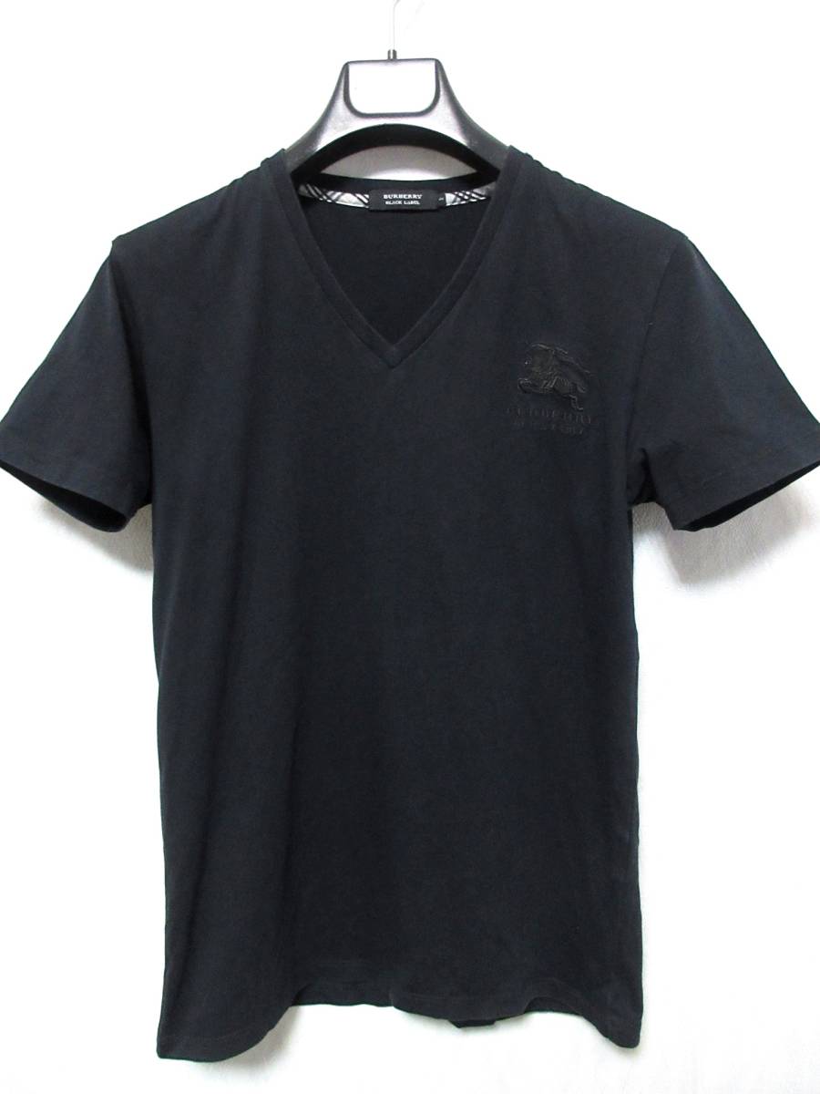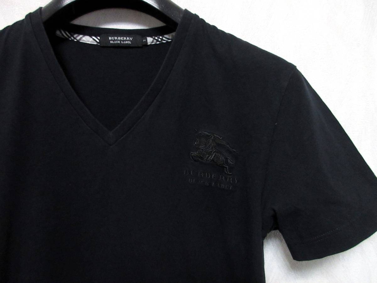 バーバリーブラックレーベル BURBERRY BLACK LABEL 半袖 カットソー Vネック Tシャツ 黒 ブラック 2 亥1229