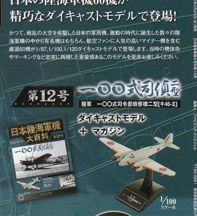 | 商品紹介 | 日本陸海軍機大百科 アシェット・コレクション・ジャパン 日本の陸海軍機が精巧なダイキャストモデルで甦るワンテーママガジン 激動の時代に誕生した数々の日本陸海軍機について、貴重な写真と豊富なイラストでつづるマガジンと、毎号精巧なダイキャストモデルがついた『日本陸海軍機大百科』 『有名機や航空ファンに人気の高いマイナー機など厳選機が1/87、1/100、1/120ダイキャストモデルで登場。 付属品 1.精密戦闘機モデル 2.マガジン 新品です 梱包サイズ:60サイズ 重量:500g以下 (実際のサイズ・重量と異なる場合があります) 定形外郵便・ゆうメールでの発送をご希望の場合、郵便事故の補償は当方では致しかねますのでご了承願います。 他の商品と同梱発送が出来ますので、もし他にご希望の商品が有る場合はご検討ください。 他にもたくさん出品していますので「出品者のその他のオークション」もご覧ください |