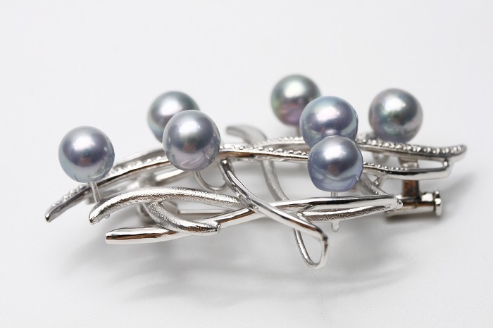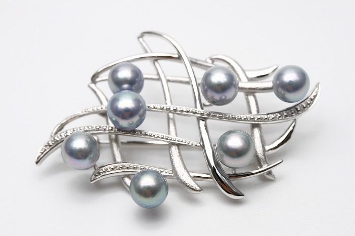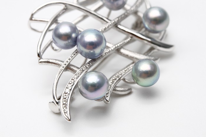 爽やかなブルーカラーに輝くアコヤパールを使用したブローチです。 美しい輝きの珠を贅沢に7ピースあしらいました。 胸元のワンポイントに置くだけで華麗な彩りをプラスいたします。 | |