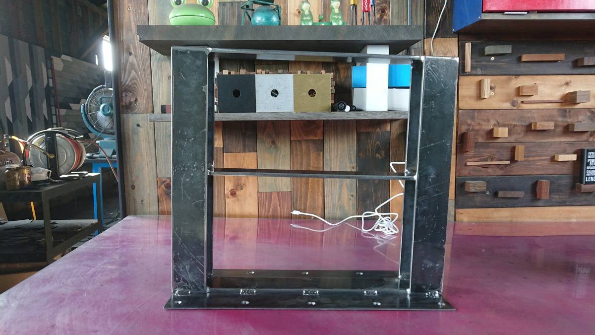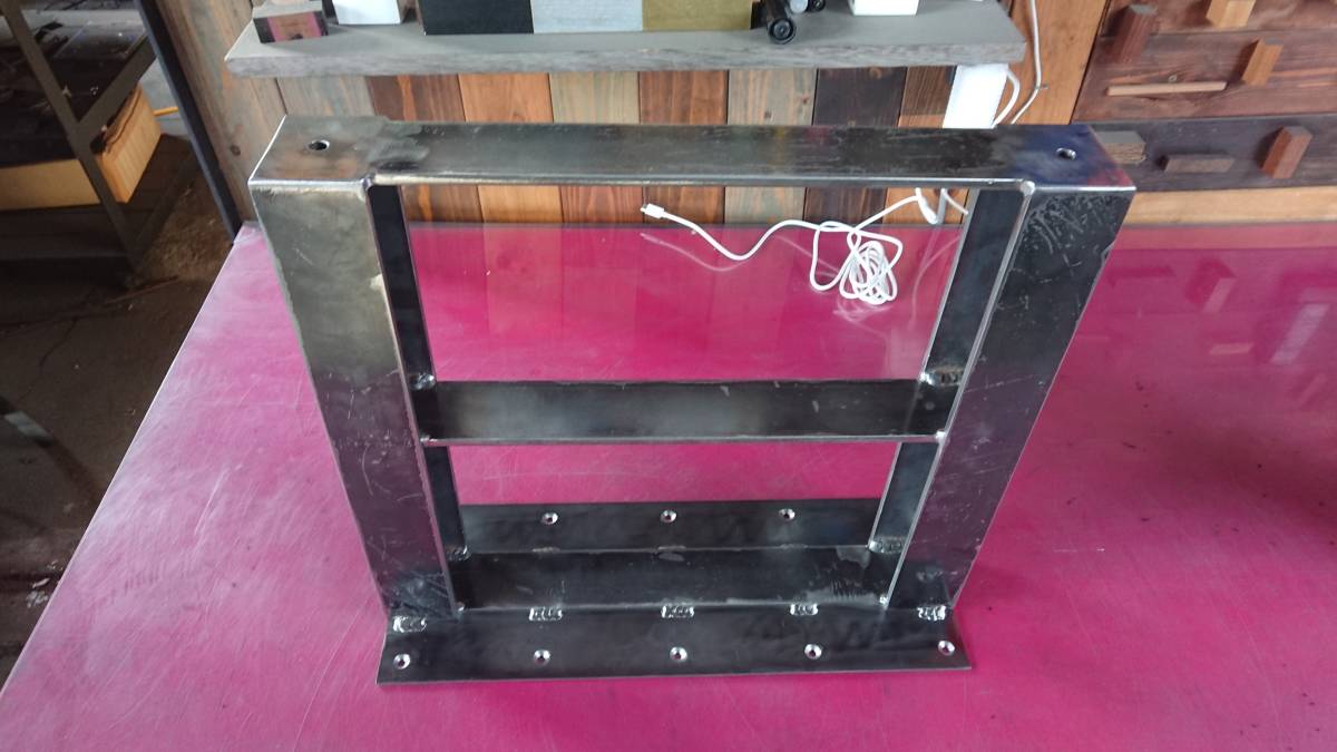 フレーム部:6mm × 50mm フラットバー(スチール) 天板受け:2.3mm 鉄板