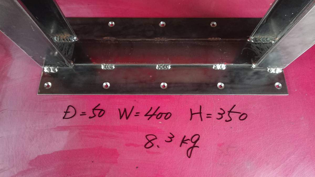 フレーム:50mm × 400mm × 350mm( 幅 × 奥行 × 高さ ) 天板受け:150mm × 400mm × 2.3mm ( 幅 × 奥行 × 厚み )