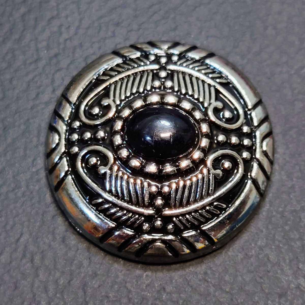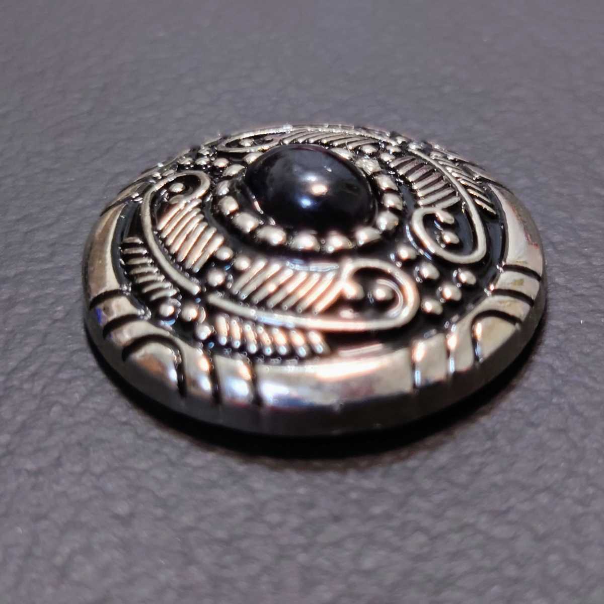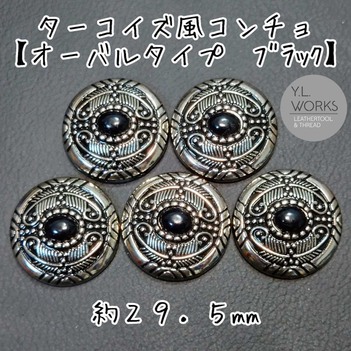 ネジ式の楕円形のターコイズ風ストーンが特徴的なコンチョです。