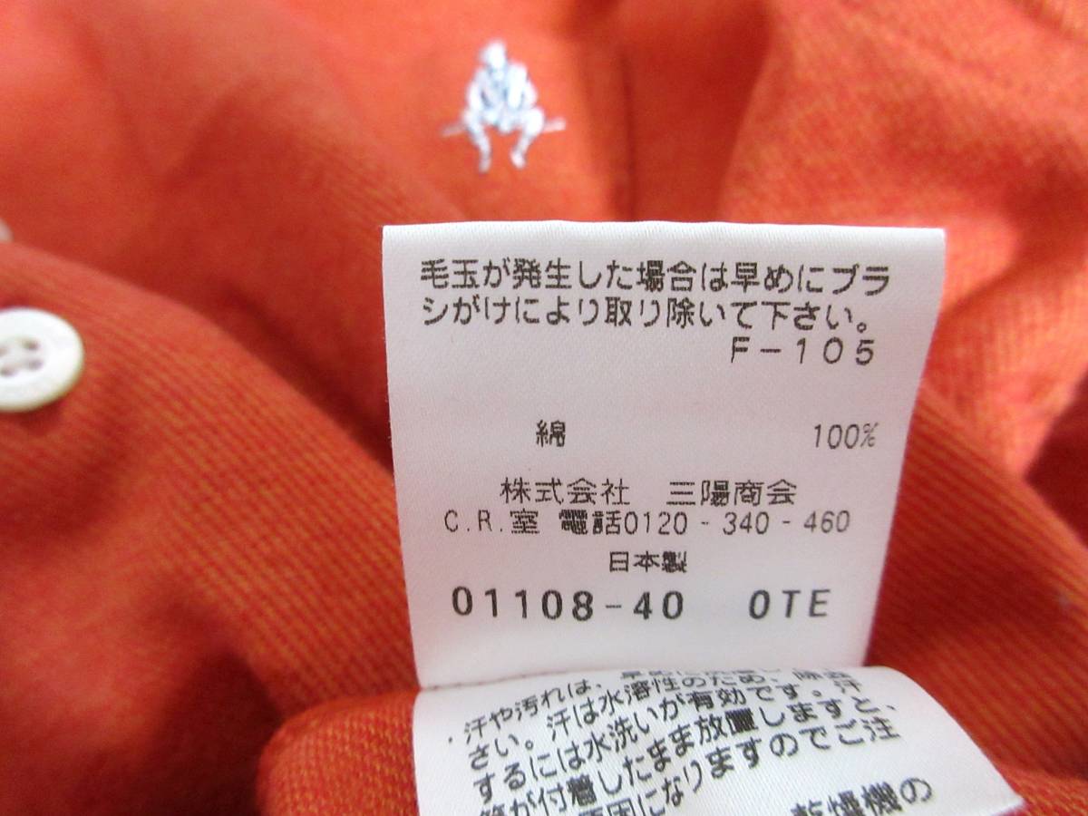 ポールスチュアート PAUL STUART SPORT 長袖 ボタンダウンシャツ 起毛 オレンジ L 亥1596
