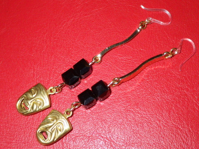 ツーフェイスのチャーム部分(ブラス素材)が当時物のビンテージ、流線&ブラック・ダイスチャーム、クリア・フック(アレルギー対応の樹脂フック)部分&丸カン、その他のパーツが現行の未使用品になります♪