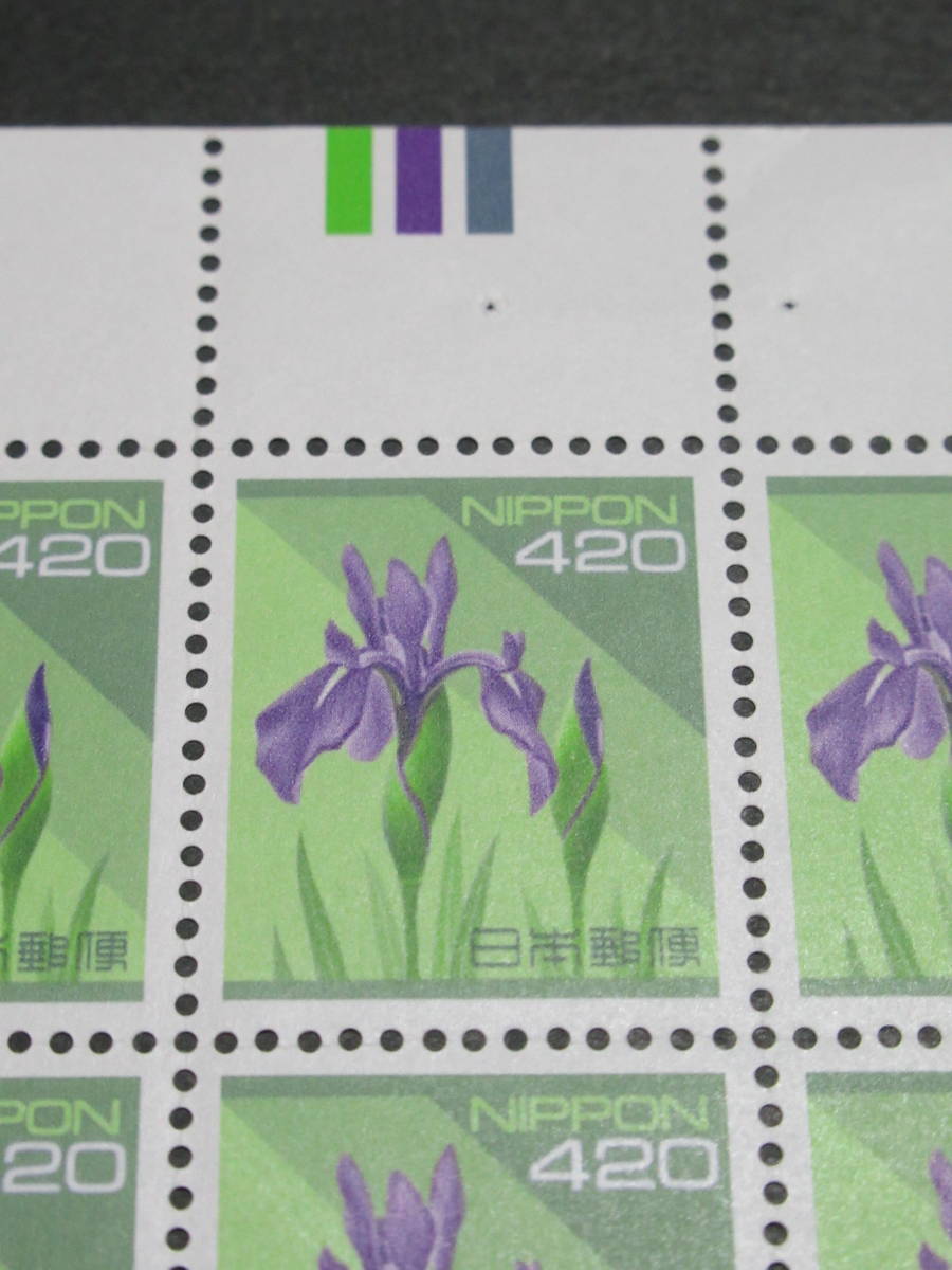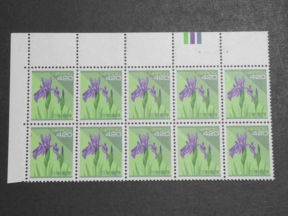 《普通切手・各種》 420円ノハナショウブ・CM上付・10枚ブロック 《カタログ価 15000円》