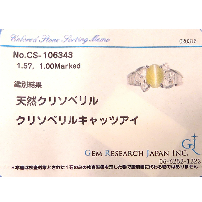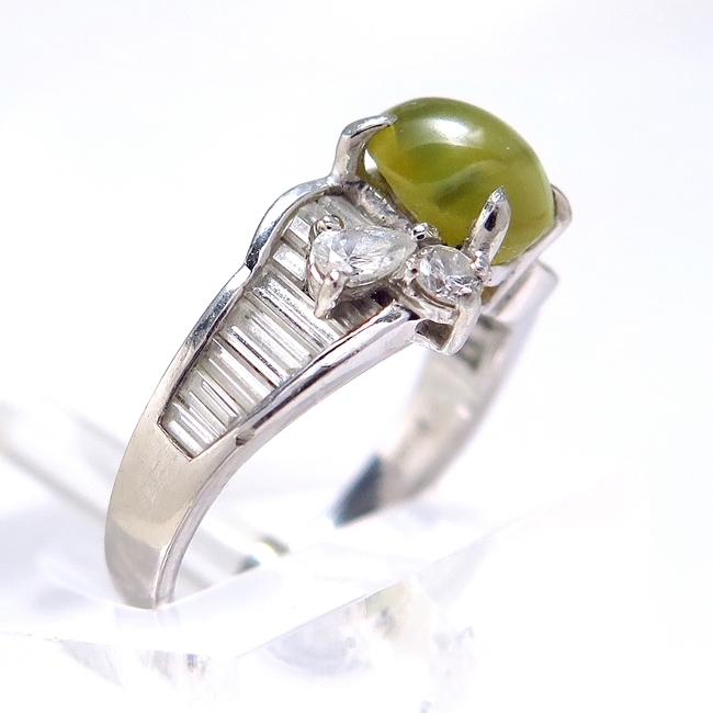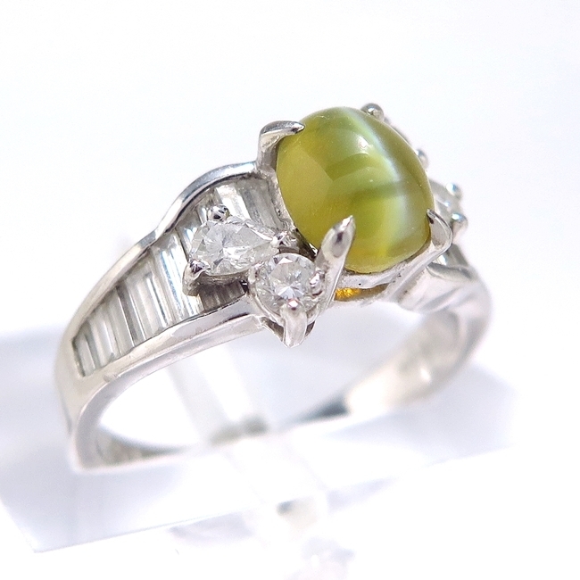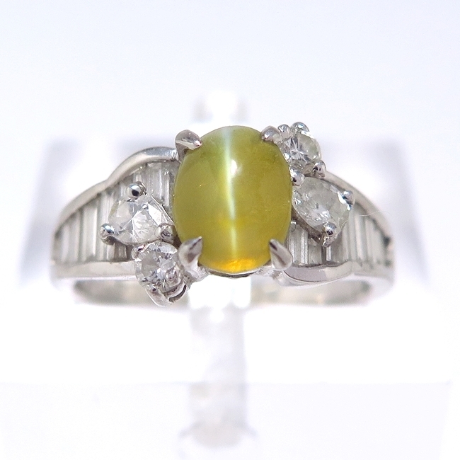 *Pt900(プラチナ) *キャッツアイ:1.570ct *ダイヤモンド:1.000ct *モチーフの大きさ(約):縦8.0mmx幅12.4mmx厚6.4mm *アーム幅(約):2.2mm~3.0mm *重さ(約):4.7g *号数:8.5号 *ランク:A *付属品:ソーティング付き ※詳細はお気軽にお問い合わせください。 (RC) e6271 10003115