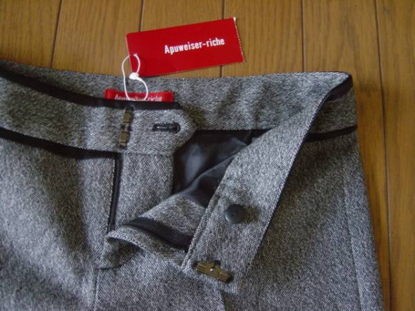 気持ちの良いお取引を心がけておりますので どうぞ宜しくお願い致します☆( ^▽^)/.。.:*・° ご覧いただきありがとうございます:。☆(-∀・*)(*・∀-)☆+:。 ★新品Apuweiser-riche カシミヤ入りウールツイードパンツ ブラック★ 新品★アプワイザー・リッシェのウールパンツ、お色は黒と白のツイードになります。グレーっぽいお色です ウエスト部分は黒サテンのパイピングライン★ウエストをすっきり見せてくれます。バックは見せポケットが両サイドにデザイン、ヒップラインを綺麗に見せてくれます ウール素材、カシミヤも入っていてとても柔らかな手触り♪ウールですがぼてっとせず、細身シルエットの美脚パンツです (^▽^) 状態☆新品タグ付☆定価¥16800 サイズ表記 2 サイズ実寸平置きで 丈 104センチ ウエスト幅 36センチ ヒップ 44・5センチ 股上 26センチ 裾付け根幅 26センチ 太腿中央部分幅 19・5センチ 股下 85・5センチ 裾幅 25センチ (素人採寸ご了承下さいませ) 素材 表地 毛 76% ナイロン 20% カシミヤ 3% ポリウレタン 1% 裏地 ポリエステル100% 新品、綺麗な状態です。 可能な限り商品をチェック、傷等御座いましたらもちろん記載いたしますが個人出品、保管になります事をご理解の上ご入札下さいますようお願 い申し上げます 他に多数新品ポーチ、バッグ、洋服出品しておりますので宜しかったらご覧下さいま せ★ 自宅保管になりますので神経質な方はご遠慮下さい。 質問等 御座いましたらお気軽にしてくださいね(* '-^)⌒☆ 宜しくお願いいたします(*^▽^*)/ |