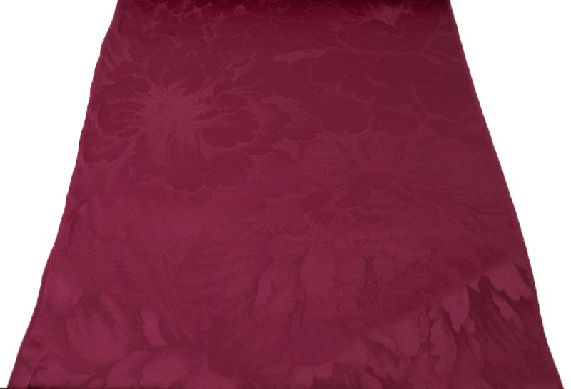 新品正絹の臙脂色、牡丹模様のハギレです。