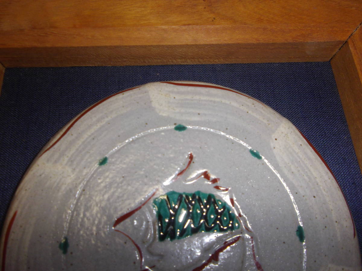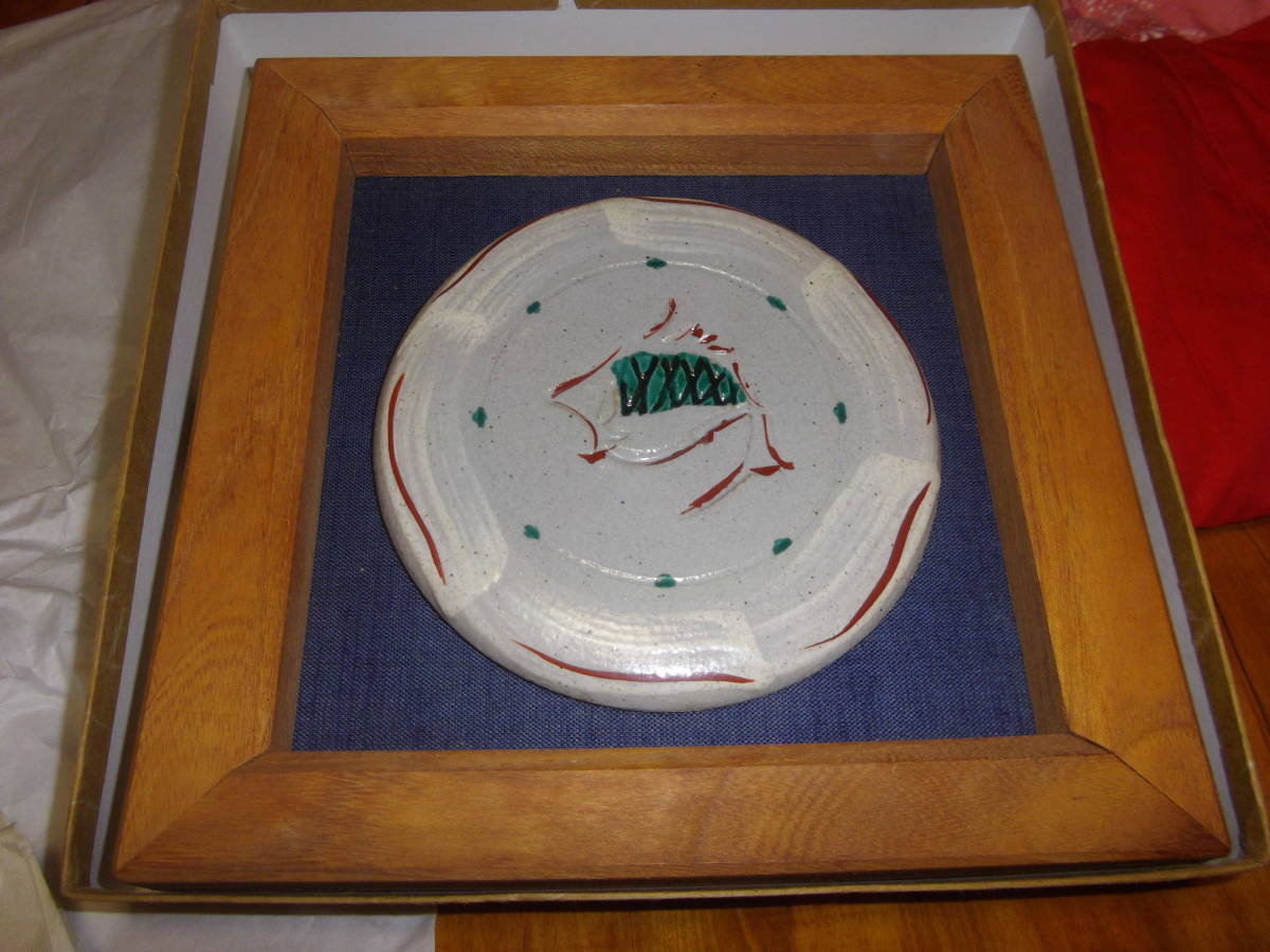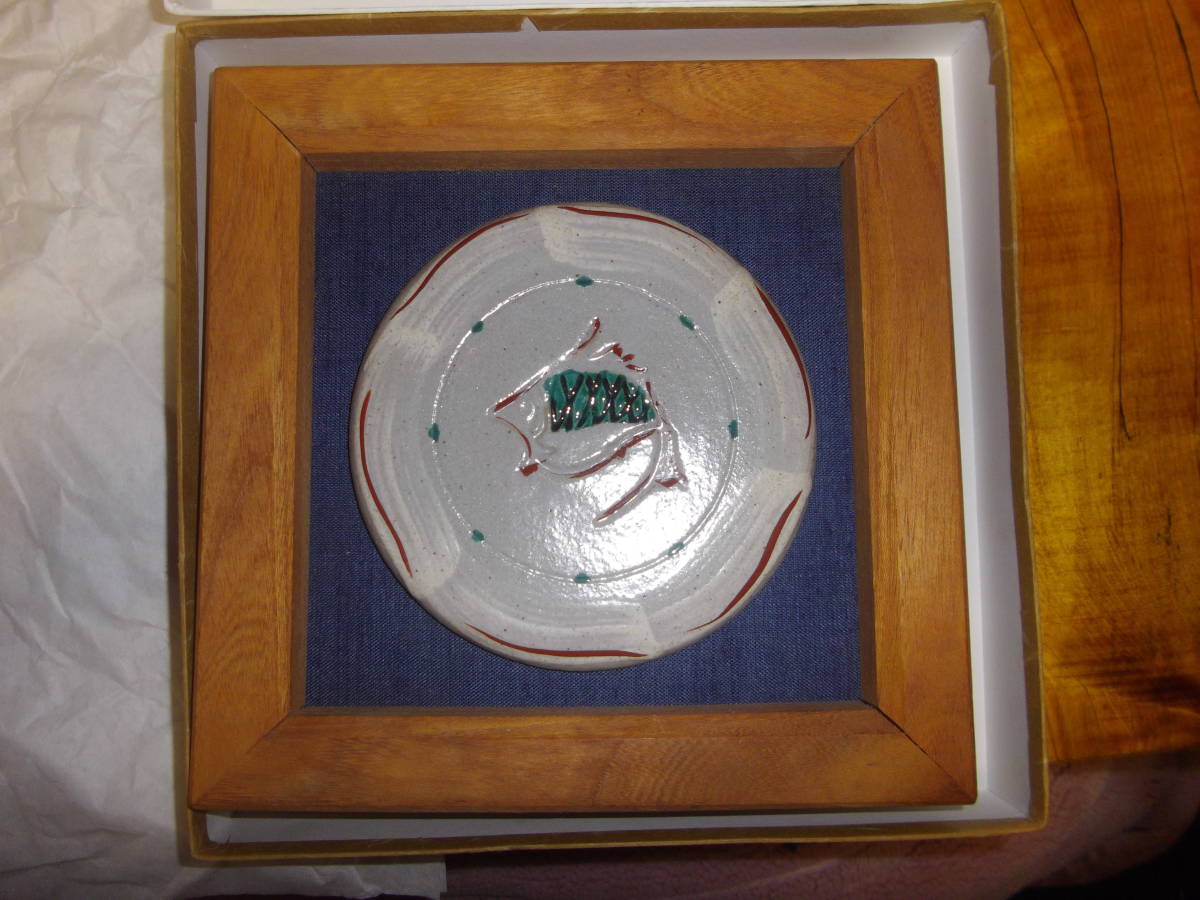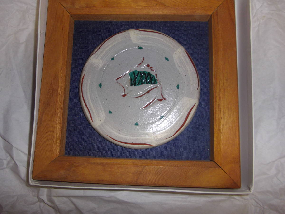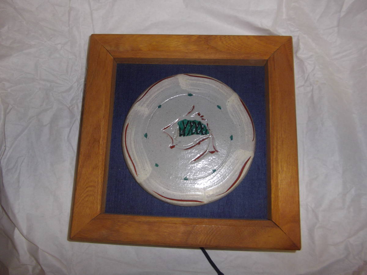 益子焼明石正作のオブジェの陶板となります。大きさは、木枠は欅製で22cm、本体は14.5cmあります。魚赤絵で可也の珍品です。今回特出しですので、NC、NRでよろしくお願い致します。