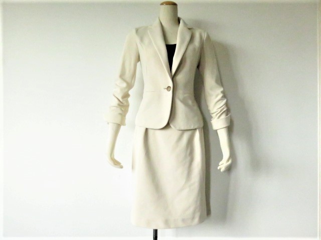 ■上質美品【CLEAR IMPRESSION】クリアインプレッション 高級 ソフト スーツ 9号M【2】クリーム色スーツ s1581