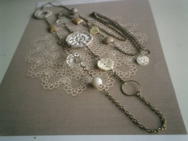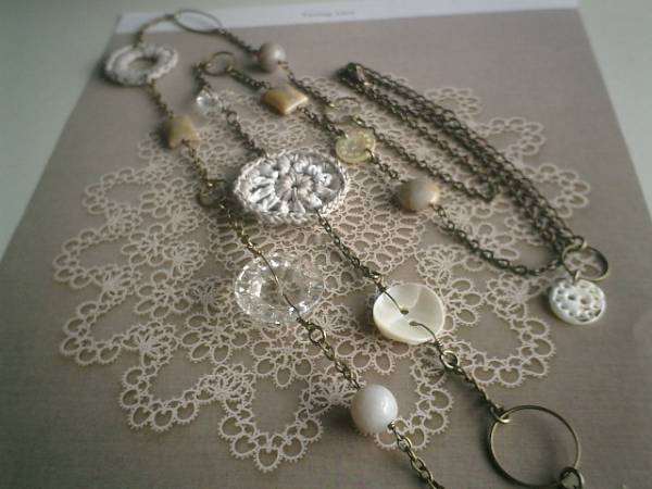 大人色の物語・・シリーズです♪初夏の香り・・個性的なフォシルコーラル(化石珊瑚)やガラスボタンやシェルボタンや編みパーツなどナチュラルな素材を集めたネックレスです♪化石珊瑚は10ミリの丸玉、12ミリのコイン、10×14ミリのスクエアです♪12ミリから33ミリ位までのガラスやシェルボタンや編みパーツを合わせて大人のロマンチックしています♪長さは全長122センチ位で調節自由です♪2連にされても素敵です♪お揃いのブレスレットも出品しています♪♪シンプルで飽きのこないいつまでも着けられるデザインを考えて作りました!ハンドメイドをご理解頂いてノークレーム、ノーリターンでお願いします