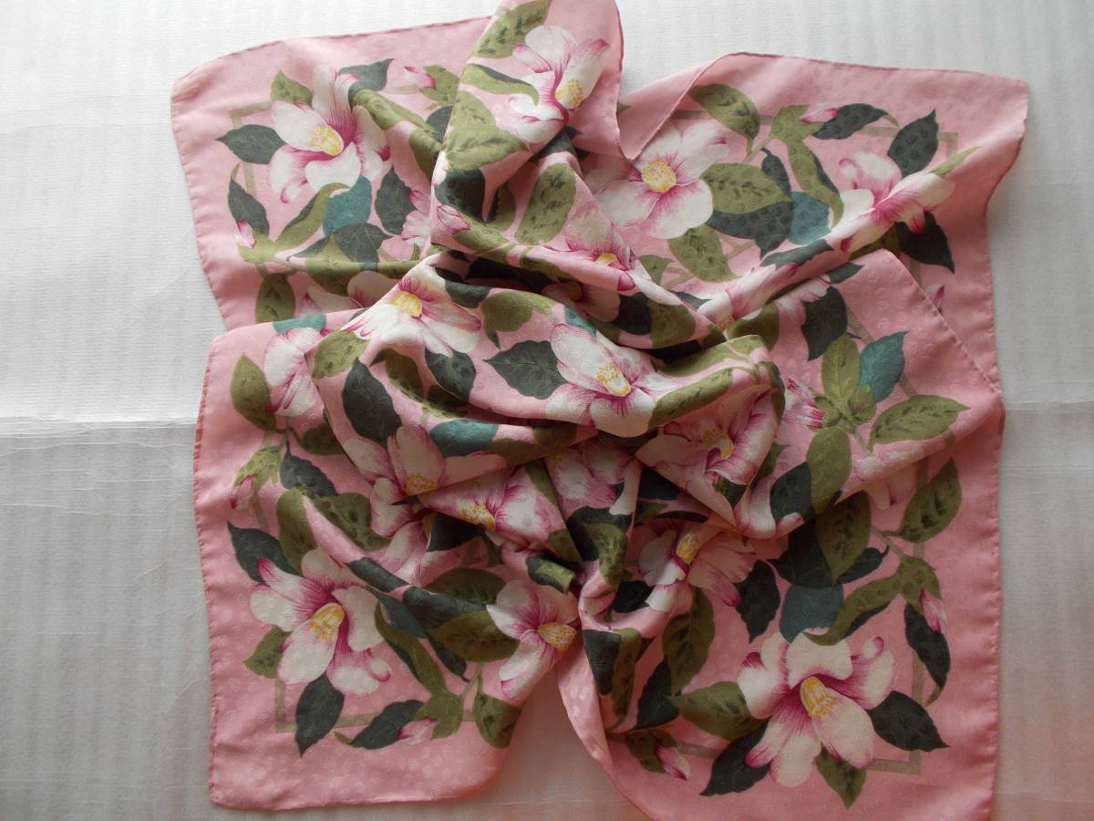 スカーフ レディース 大判 ピンクxグリーン 花柄