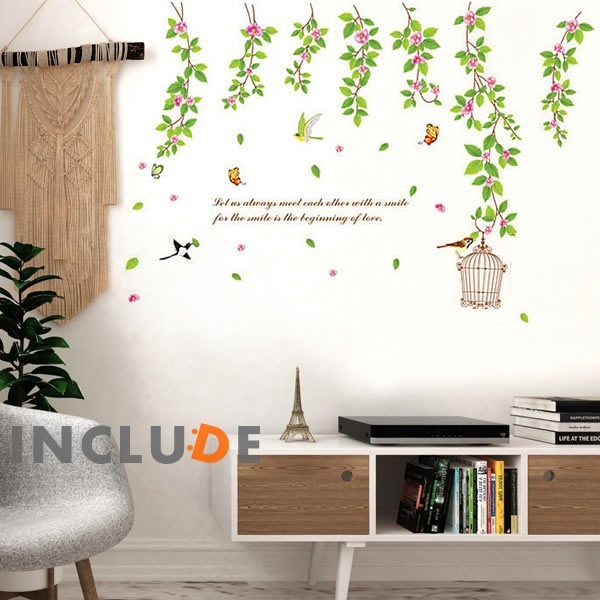 ウォールステッカー 木陰 すだれ 鳥 鳥かご 休日 リラックス 木 モダン シック 北欧 カフェ CAFE リビング