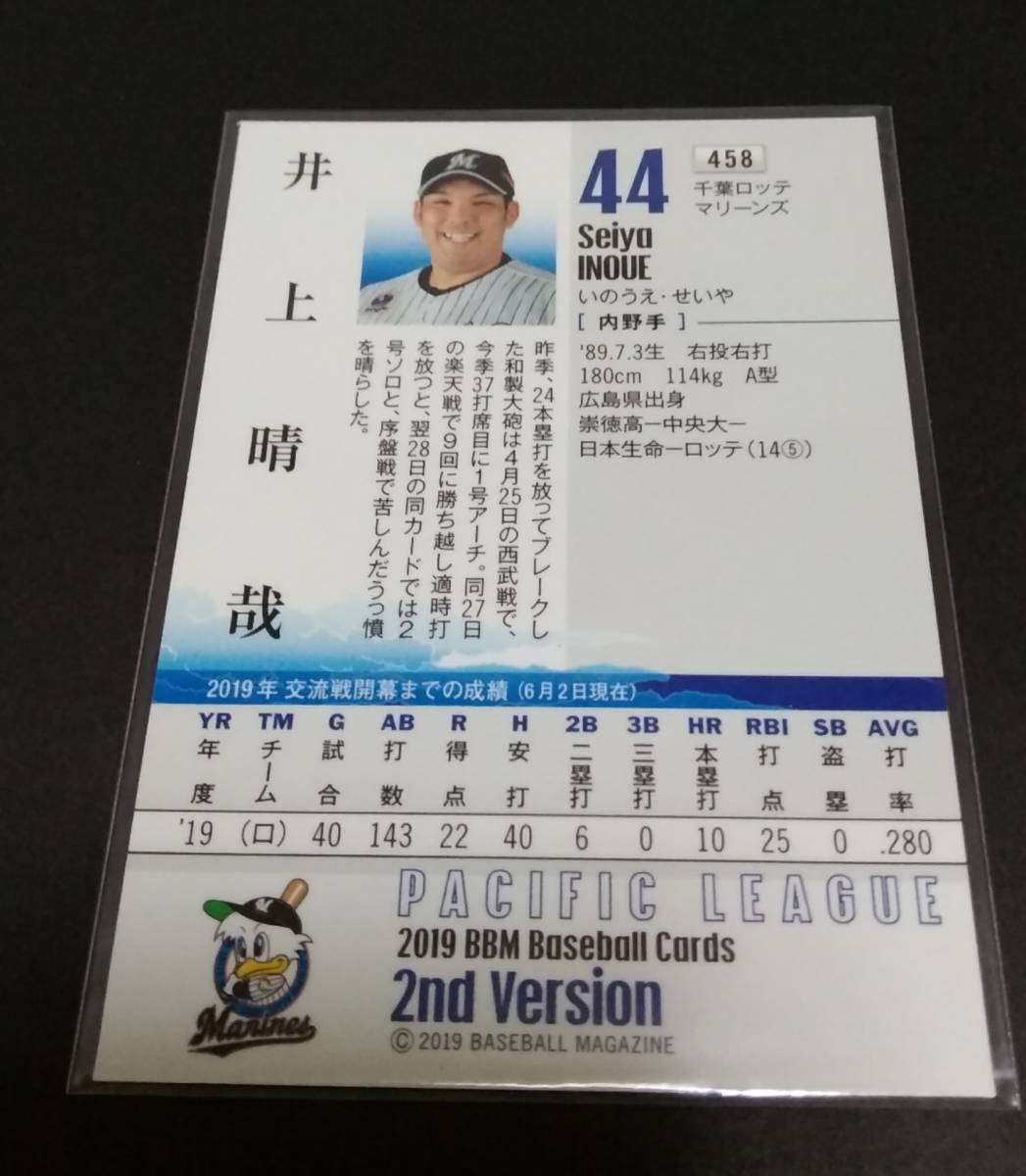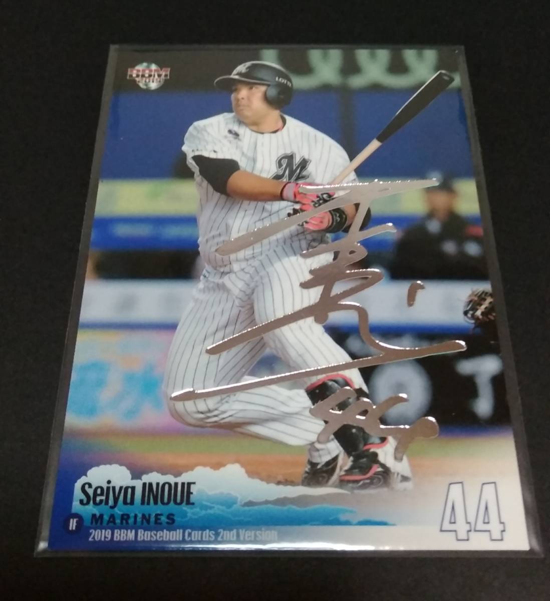 2019年BBM 2nd 井上晴哉(ロッテ)銀箔サイン。No,458。