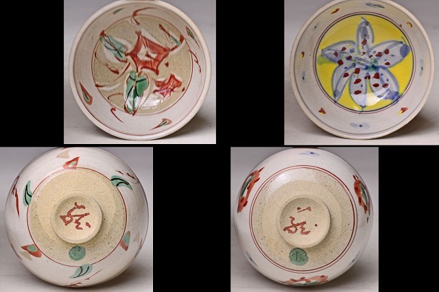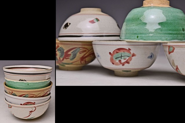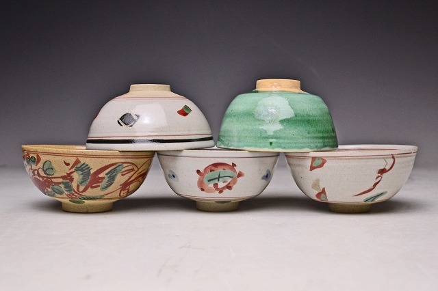 萬古赤絵風な作品や、犬山焼風な作品、オリジナルな色絵 など 5種類の 小碗 です。
