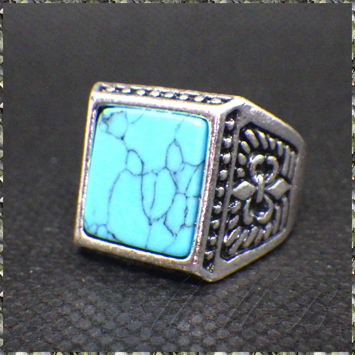 Turquoise Square Stone Antique Silver スクエア ターコイズ ストーン アンティーク シルバー エスニック スタイル リング です。