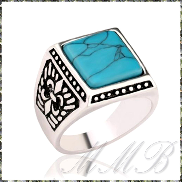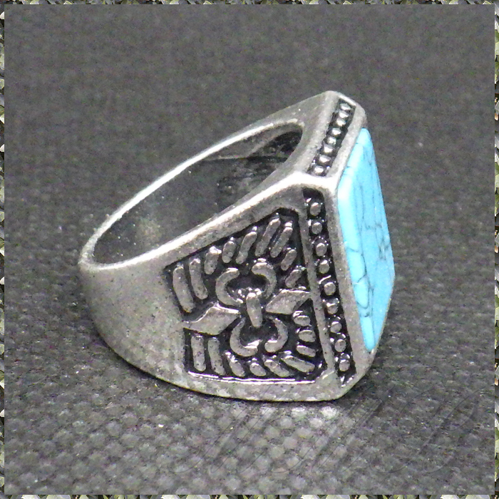 [RING] Turquoise Square Stone Antique Silver スクエア ターコイズ ストーン アンティーク シルバー エスニック スタイル リング 14号
