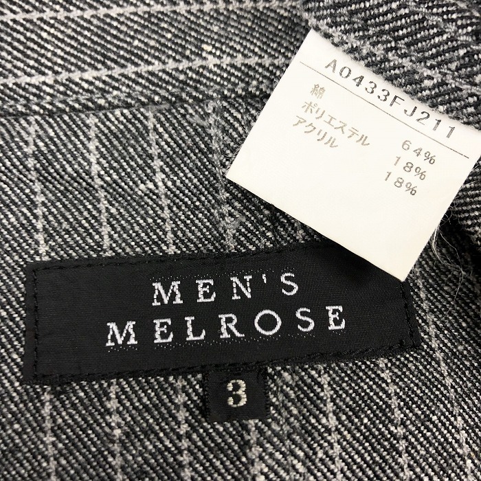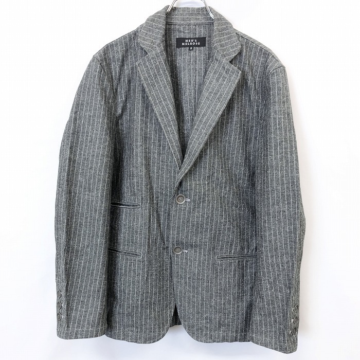 | 商品タイトル | MEN'S MELROSE メンズメルローズ 3 メンズ 男性 デニム テーラードジャケット ピンストライプ 裏地無し 長袖 綿×ポリ×アクリル グレー系 |
