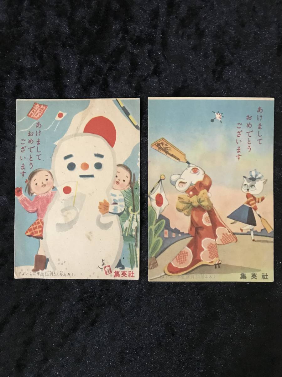 昭和 郵便はがき 集英社 よいこ二年生 正月特別号 付録 2枚セット