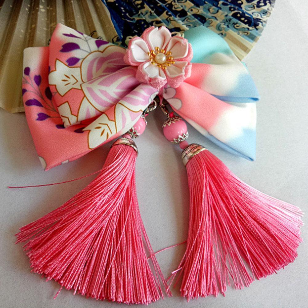 メイン素材: ポリエステル 華やかな模様のリボンに きれいな織り布 が アクセント 。 作り手さんの遊び心を感じるデザインです。 結い上げたヘアアレンジ につけていただくだけで、 着物姿は何倍も華やかになります。 成人式 や結婚式 、 パーティーといった フォーマルシーン はもちろん 浴衣 や 着物 といった日常シーンでもお使いいただけます。お子様の七五三、花火大会、桃の節句 、お正月に華やかなアクセサーリです。 カラー:レッド、ブルー、ピンク