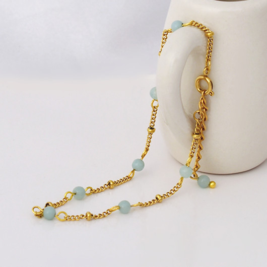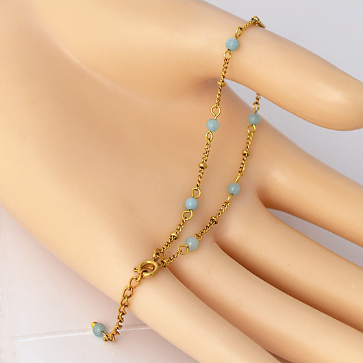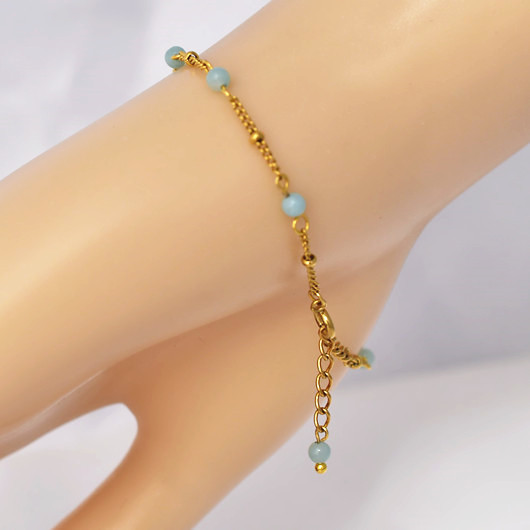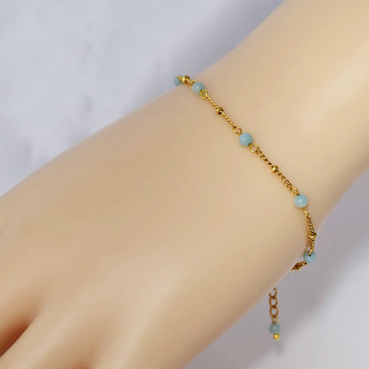 ●金属素材:ステンレス、18KGF。●サイズ:長さ約17cm、アジャスター約3cm、全長約20cm。●ストーン:天河石(アマゾナイト)、直径3mm。