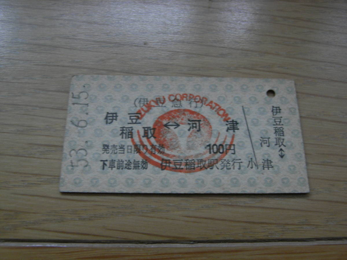 ①伊豆急行 伊豆稲取-河津 100円 昭和53年6月15日 伊豆稲取駅発行 東急グループマーク入り