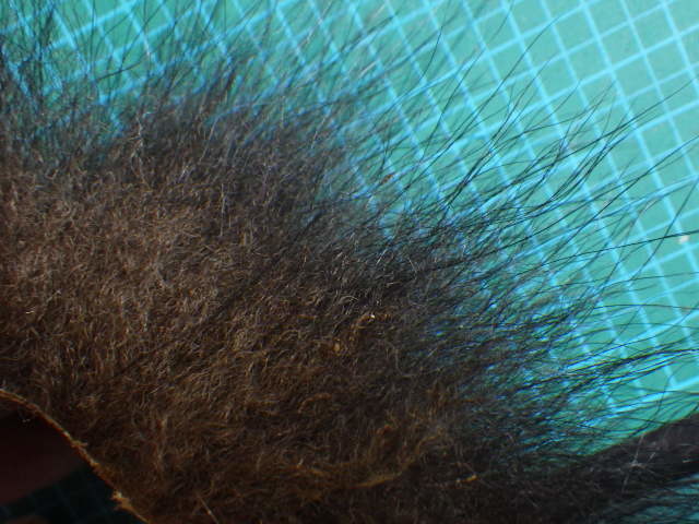 小熊のダークブラウンのヘアです。ガードヘアは結構張りがあります。