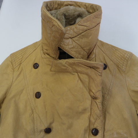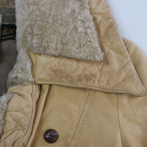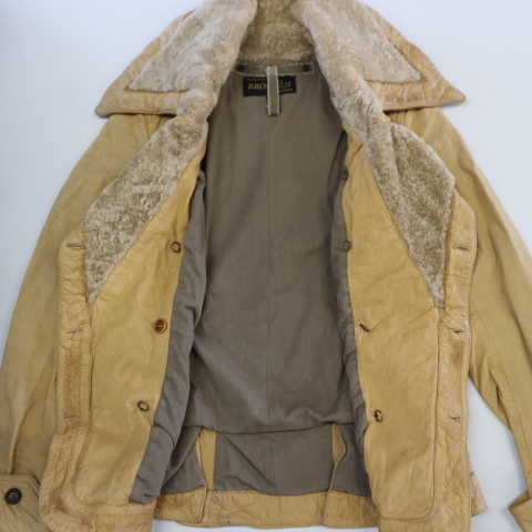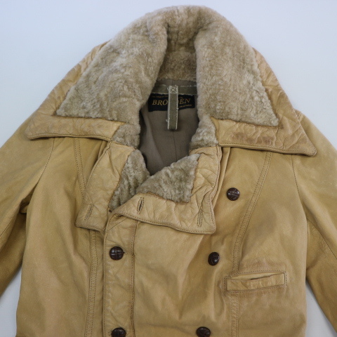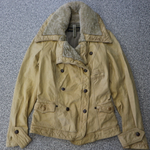 ITALY製 BROGDEN レザージャケット XS ベージュ ダブル ライダース ファー コート ブログデン イタリア