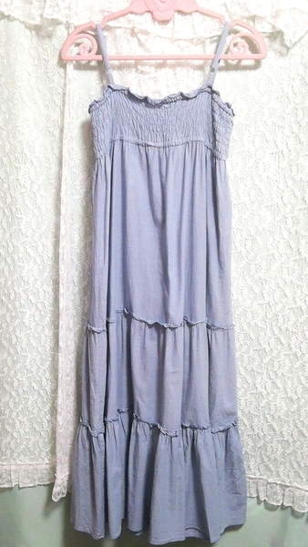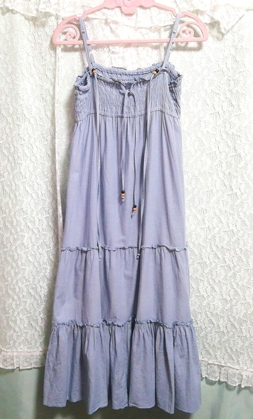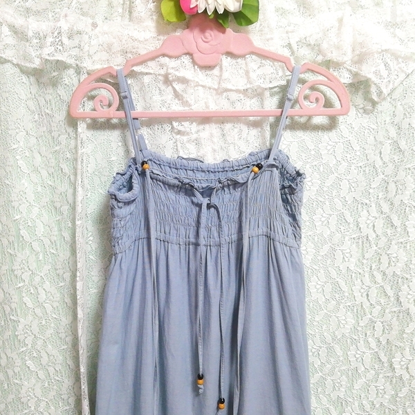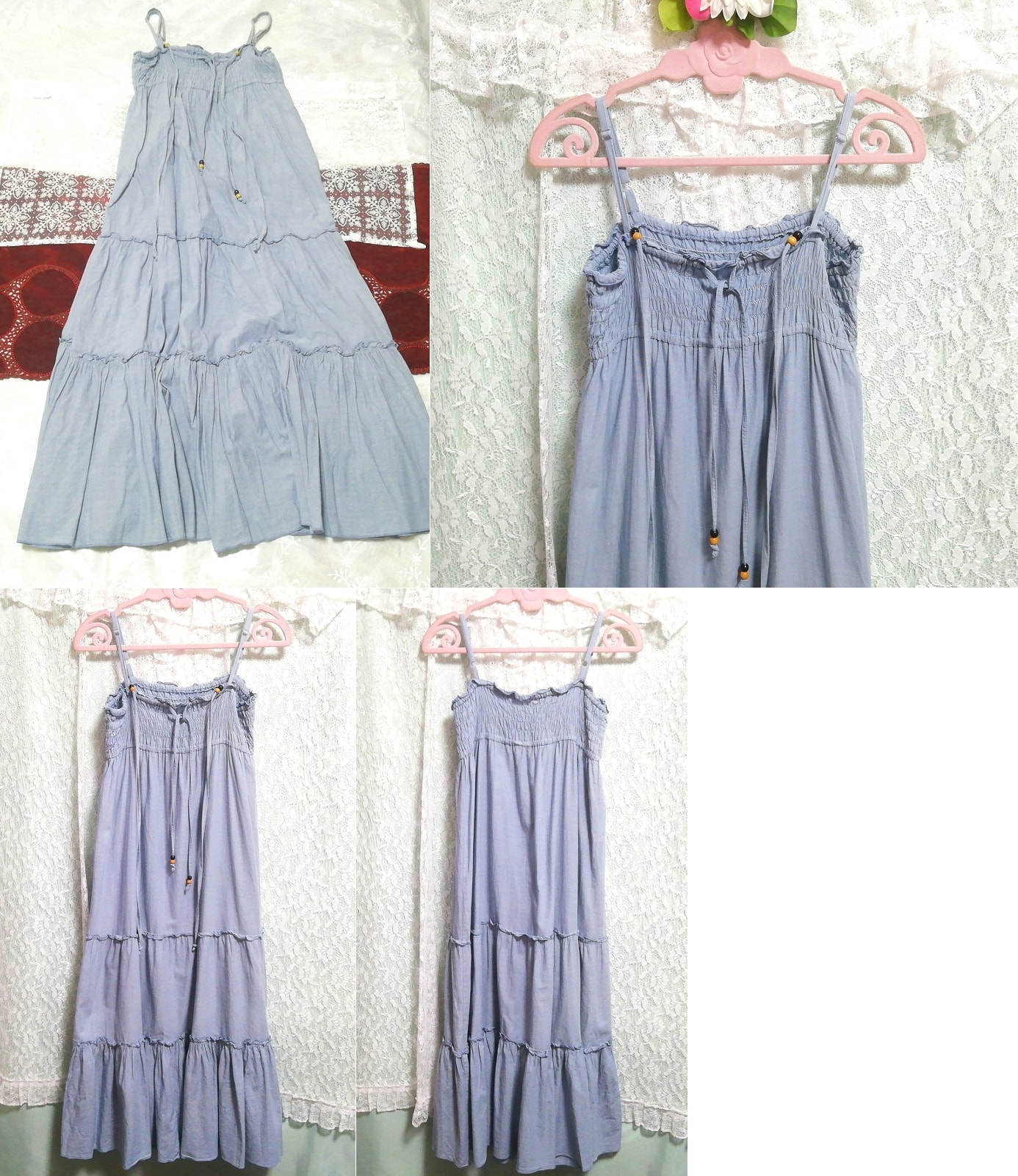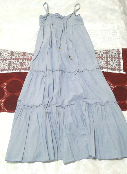 デニム玉紐綿コットン ネグリジェ マキシキャミソールワンピース Denim thong cotton cotton negligee maxi camisole dress