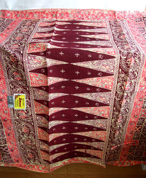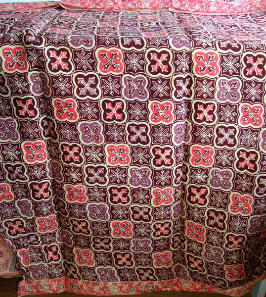 インドネシアの伝統的なろうけつ染めの更紗布(バティック)です。 鮮やかな色使いが素敵な一枚です。