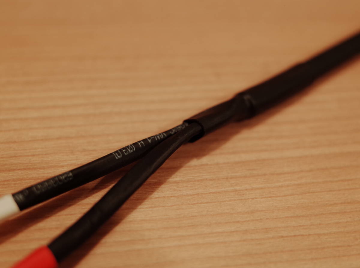 プラグからケーブルの根本まで厚めの艶消し収縮チューブを使用し