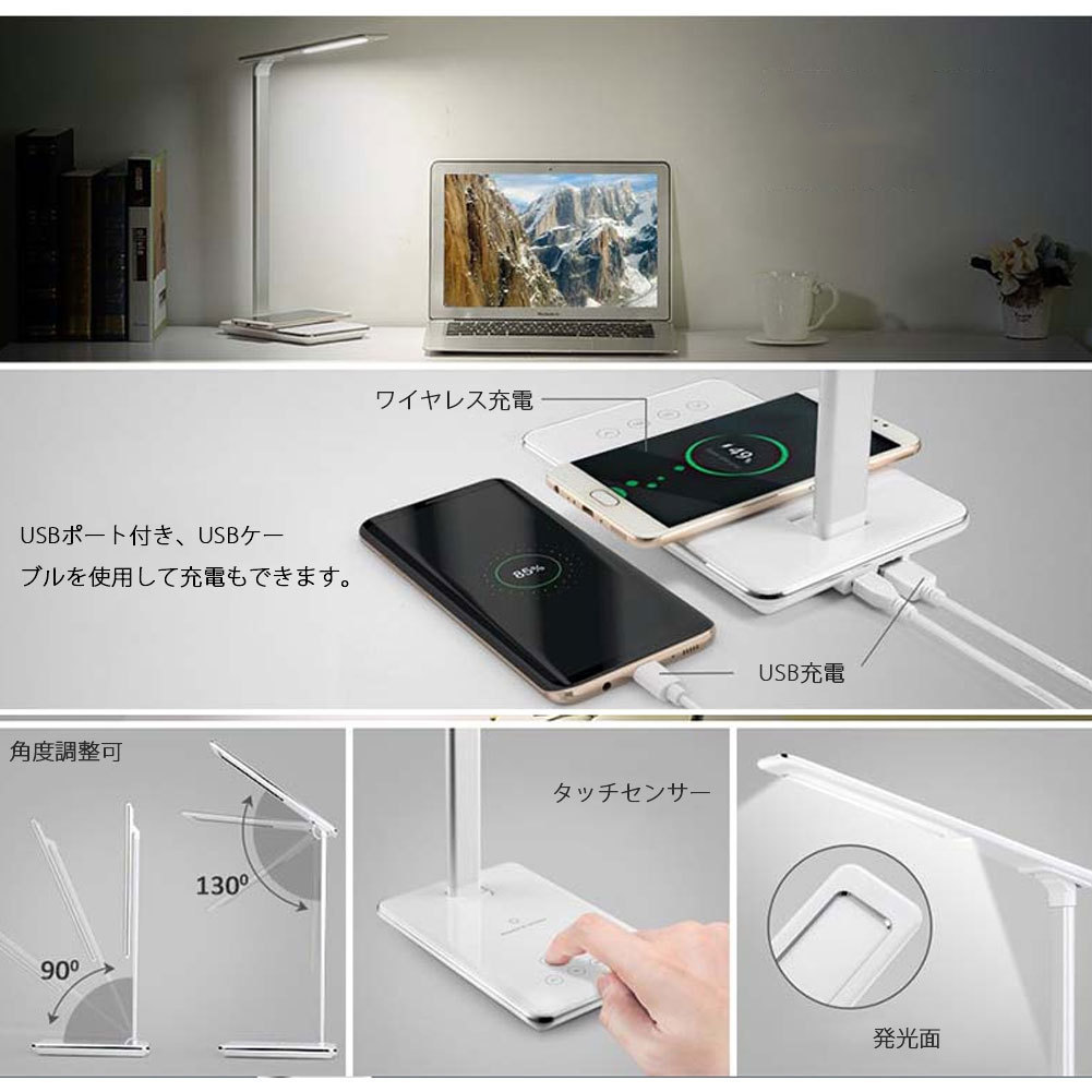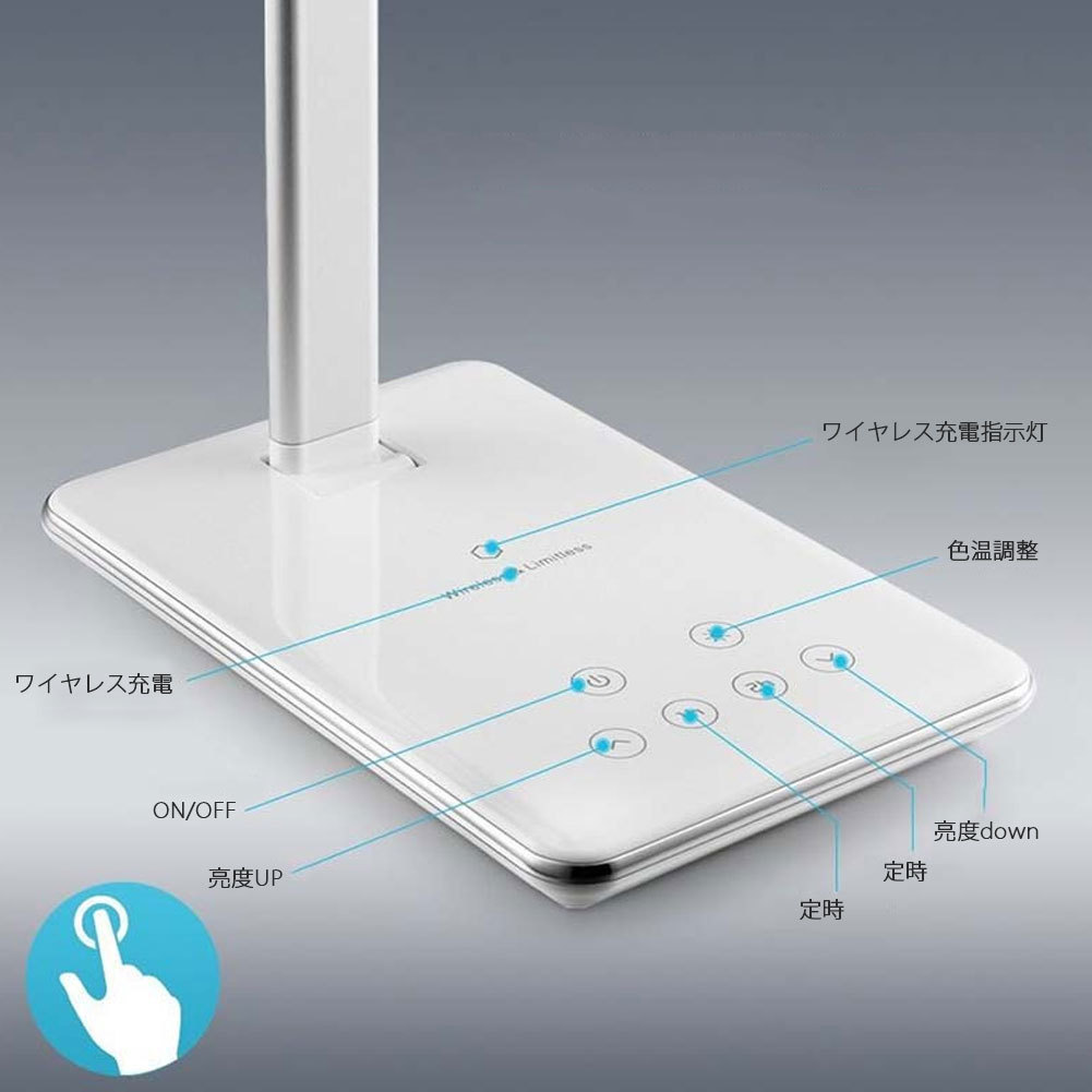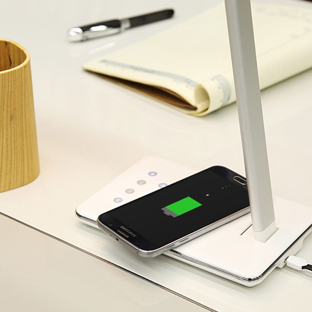 デスクを明るく照らすだけでなく、スマートフォンのワイヤレス充電機能を搭載。