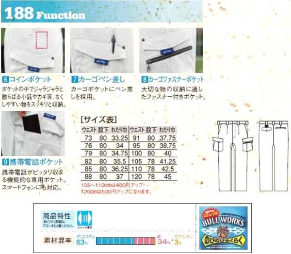 新品☆SOWA カーゴパンツ 73~120 作業着 ワーキング 188