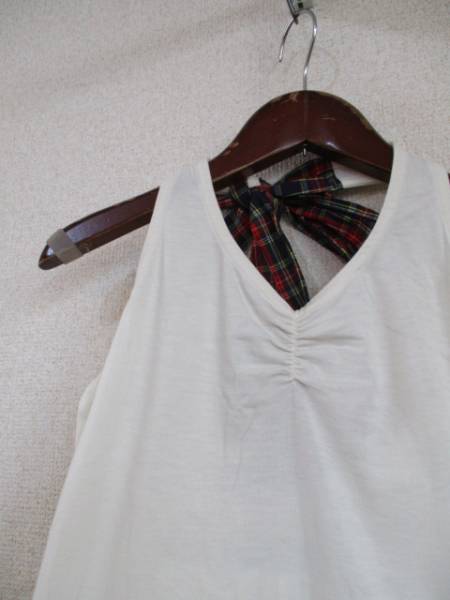 商品紹介 | チェックの肩紐がポイントになったホルターネックキャミソールです。 胸にギャザーが入ったデザインです。 本体生地はきなりのカットソー素材です。 《素材》 表地:綿50% レーヨン(モダール)50% |