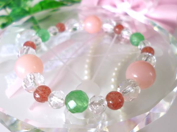 ★ピンクカルサイト★グリーンアベンチュリン★モスコバイト★クリスタル☆レインボーオーラ♪ ☆15cm☆